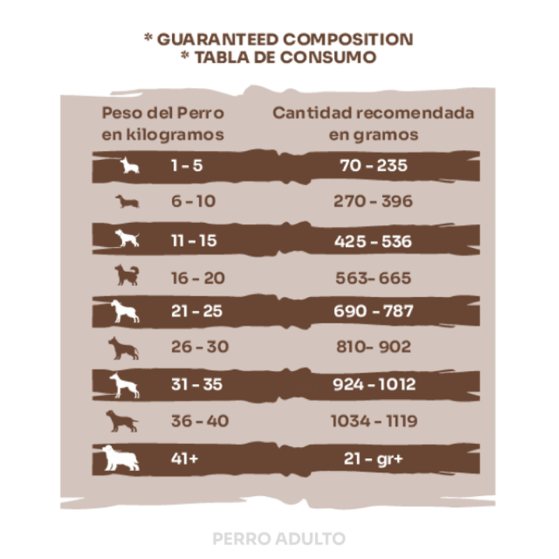 Carne de pollo hidrolizada, agua, hígado de pollo hidrolizada, harina de arroz, pollo deshidratado hidrolizado, aceite de canola, zeolita, hemoglobina en polvo hidrolizada, cloruro de potasio, carbonato de calcio, polidextrosa, carbonato de potasio, DL-metionina, canela en polvo, extracto de romero, cloruro de colina, bicarbonato de sodio, colágeno hidrolizado, vitaminas (C, E,A,D3,tiamina, riboflavina, piridoxina, B12), minerales (sulfato ferroso, sulfato de cobre, sulfato de magnesio, oxido de zinc, yodato de calcio, selenito de sodio), L-taurina.